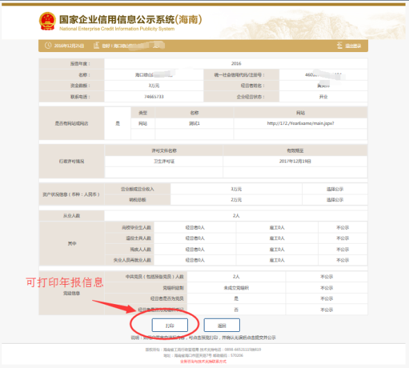 第十一步:選擇“查看”,進(jìn)入打印頁面,即可打印年報信息。