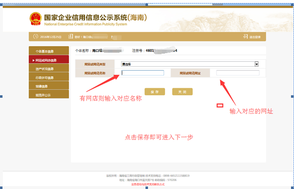 第四步:進(jìn)入填報頁面。個體工商戶名稱、注冊號、經(jīng)營者姓名和資金數(shù)額均為系統(tǒng)默認(rèn)項(xiàng)目。個體工商戶根據(jù)實(shí)際情況選擇“是否有網(wǎng)站或網(wǎng)店”,如選擇“是”,則須填報“網(wǎng)站或網(wǎng)店信息”。