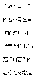 名稱核準(不冠省名),與冠省名的區(qū)別為:冠省名的名稱無需指定登記機關(guān),由企業(yè)自主選擇,而不冠省名的名稱需在審核通過后同時指定登記機關(guān),即根據(jù)名稱行政區(qū)劃,指定登記機關(guān)