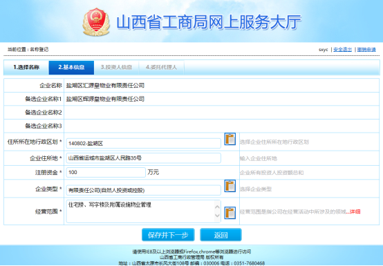 冠省名和不冠省名的名稱申請頁面是基本相同的,同樣也是先填寫名稱的相關(guān)信息。