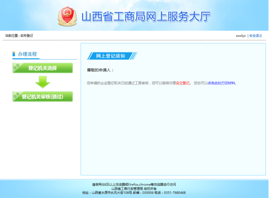 網(wǎng)上登記須知 尊敬的申請人: 歡迎使用山西省工商局網(wǎng)上登記系統(tǒng)辦理業(yè)務!本系統(tǒng)目前開通的業(yè)務有:企業(yè)名稱預先核準、企業(yè)設立登記。該系統(tǒng)是為企業(yè)提供網(wǎng)上登記注。。。