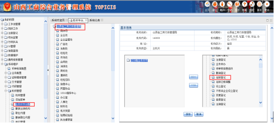 2.【系統(tǒng)維護(hù)】-【機(jī)構(gòu)管理】-【業(yè)務(wù)環(huán)節(jié)分配】項(xiàng),把未分配業(yè)務(wù)環(huán)節(jié)中的【名稱登記】