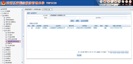 工商人員,點擊【注冊登記】-【設(shè)立登記】-【外網(wǎng)設(shè)立登記材料核審】,輸入企業(yè)名稱,點擊【查詢】