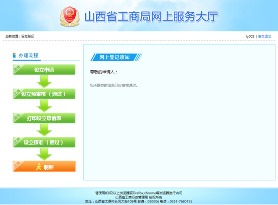 如圖:等待審核人員打印營業(yè)執(zhí)照。