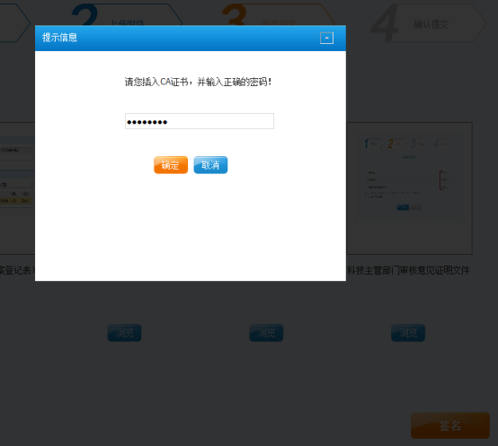 插入CA證書,輸入正確的CA密碼,點擊[確定]按鈕繼續(xù)操作。