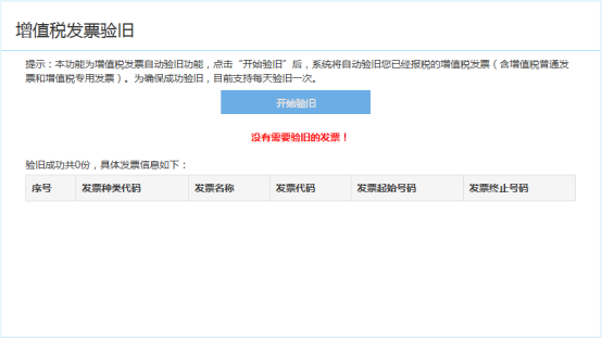 如果當前沒有可驗舊的發(fā)票,系統(tǒng)將作如下提示: