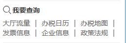 {placeholder tag=p i=377} {placeholder tag=span i=1262}辦稅服務(wù)廳熱度:已辦理人次{placeholder tag=span i=1263}/{placeholder tag=span i=1264}辦稅{placeholder tag=span i=1265}服務(wù){placeholder tag=span i=1266}廳的極限{placeholder tag=span i=1267}承載{placeholder tag=span i=1268}人次{placeholder tag=span i=1269}; {placeholder tag=p i=378} {placeholder tag=span i=1270}當(dāng)前等待人數(shù):當(dāng)前已取號{placeholder tag=span i=1271}仍在等待辦理{placeholder tag=span i=1272}涉稅{placeholder tag=span i=1273}業(yè)務(wù)的人次{placeholder tag=span i=1274}; {placeholder tag=p i=379} {placeholder tag=span i=1275}預(yù)計等待時間:預(yù)計最后取號人的等待時間,僅供參考{placeholder tag=span i=1276}; {placeholder tag=p i=380} {placeholder tag=span i=1277}聯(lián)系電話、辦公時間、辦公地址均為正確信息{placeholder tag=span i=1278}。 {placeholder tag=h2 i=72} {placeholder tag=span i=1279}({placeholder tag=span i=1280}二{placeholder tag=span i=1281}){placeholder tag=span i=1282}辦稅日歷 {placeholder tag=p i=381} {placeholder tag=span i=1283}點擊{placeholder tag=span i=1284}“我要查詢”菜單的{placeholder tag=span i=1285}“辦稅日歷”鏈接,可查看{placeholder tag=span i=1286}稅務(wù)網(wǎng)站發(fā)布的{placeholder tag=span i=1287}辦稅日歷,默認(rèn)顯示當(dāng)月各稅種的申報繳納期限。 {placeholder tag=p i=382} {placeholder tag=img i=172} {placeholder tag=p i=383} {placeholder tag=span i=1288} {placeholder tag=h2 i=73} {placeholder tag=span i=1289}({placeholder tag=span i=1290}三{placeholder tag=span i=1291}){placeholder tag=span i=1292}辦稅地圖 {placeholder tag=p i=384} {placeholder tag=span i=1293}點擊{placeholder tag=span i=1294}“我要查詢”菜單的{placeholder tag=span i=1295}“辦稅地圖”鏈接,可以查看{placeholder tag=span i=1296}稅務(wù)網(wǎng)站發(fā)布的{placeholder tag=span i=1297}全市{placeholder tag=span i=1298}稅務(wù)機(jī)關(guān){placeholder tag=span i=1299}辦稅地址和聯(lián)系方式。 {placeholder tag=p i=385} {placeholder tag=img i=173} {placeholder tag=h2 i=74} {placeholder tag=span i=1300}({placeholder tag=span i=1301}四{placeholder tag=span i=1302}){placeholder tag=span i=1303}發(fā)票信息 {placeholder tag=p i=386} {placeholder tag=span i=1304}點擊{placeholder tag=span i=1305}“我要查詢”菜單的{placeholder tag=span i=1306}“發(fā)票信息”鏈接,可查詢{placeholder tag=span i=1307}稅務(wù)網(wǎng)站發(fā)布的本市企業(yè){placeholder tag=span i=1308}開具的發(fā)票信息。 {placeholder tag=h2 i=75} {placeholder tag=span i=1309}({placeholder tag=span i=1310}五{placeholder tag=span i=1311}){placeholder tag=span i=1312}企業(yè)信息 {placeholder tag=p i=387} {placeholder tag=span i=1313}點擊{placeholder tag=span i=1314}“我要查詢”菜單的{placeholder tag=span i=1315}“{placeholder tag=span i=1316}企業(yè){placeholder tag=span i=1317}信息”鏈接,可查詢{placeholder tag=span i=1318}稅務(wù)網(wǎng)站提供的在本市{placeholder tag=span i=1319}辦理稅務(wù)登記的企事業(yè)單位的稅務(wù)登記{placeholder tag=span i=1320}信息{placeholder tag=span i=1321}。 {placeholder tag=p i=388} {placeholder tag=img i=174} {placeholder tag=h2 i=76} {placeholder tag=span i=1322}({placeholder tag=span i=1323}六{placeholder tag=span i=1324}){placeholder tag=span i=1325}政策法規(guī) {placeholder tag=p i=389} {placeholder tag=span i=1326}點擊{placeholder tag=span i=1327}“我要查詢”菜單的{placeholder tag=span i=1328}“政策法規(guī)”鏈接,可以{placeholder tag=span i=1329}查詢稅務(wù)網(wǎng)站發(fā)布的稅收{placeholder tag=span i=1330}政策法規(guī)。 {placeholder tag=p i=390} {placeholder tag=img i=175} {placeholder tag=h1 i=77} {placeholder tag=hr i=112} {placeholder tag=a i=39}{placeholder tag=span i=1331}五{placeholder tag=span i=1332}、我要{placeholder tag=span i=1333}預(yù)約 {placeholder tag=p i=391} {placeholder tag=img i=176} {placeholder tag=p i=392} {placeholder tag=span i=1334}點擊“我要預(yù)約”{placeholder tag=span i=1335}菜單{placeholder tag=span i=1336},可使用辦稅服務(wù)廳預(yù)約服務(wù)。 {placeholder tag=p i=393} {placeholder tag=img i=177} {placeholder tag=p i=394} {placeholder tag=span i=1337}“{placeholder tag=span i=1338}我要預(yù)約{placeholder tag=span i=1339}”{placeholder tag=span i=1340}頁面{placeholder tag=span i=1341}默認(rèn){placeholder tag=span i=1342}顯示所有預(yù)約項目{placeholder tag=span i=1343}。 {placeholder tag=p i=395} {placeholder tag=span i=1344}當(dāng)前{placeholder tag=span i=1345}可預(yù)約項目{placeholder tag=span i=1346}的{placeholder tag=span i=1347}[{placeholder tag=span i=1348}預(yù)約{placeholder tag=span i=1349}]{placeholder tag=span i=1350}按鈕{placeholder tag=span i=1351}為可點擊狀態(tài)。{placeholder tag=span i=1352}不可{placeholder tag=span i=1353}預(yù)約{placeholder tag=span i=1354}項目的{placeholder tag=span i=1355}[{placeholder tag=span i=1356}預(yù)約{placeholder tag=span i=1357}]{placeholder tag=span i=1358}按鈕{placeholder tag=span i=1359}灰色,{placeholder tag=span i=1360}為不可點擊狀態(tài)。 {placeholder tag=p i=396} {placeholder tag=span i=1361}點擊{placeholder tag=span i=1362}[{placeholder tag=span i=1363}預(yù)約{placeholder tag=span i=1364}]{placeholder tag=span i=1365}按鈕,進(jìn)入{placeholder tag=span i=1366}預(yù)約{placeholder tag=span i=1367}頁面{placeholder tag=span i=1368}。 {placeholder tag=p i=397} {placeholder tag=img i=178} {placeholder tag=p i=398} {placeholder tag=span i=1369}根據(jù){placeholder tag=span i=1370}需求,{placeholder tag=span i=1371}選擇“辦理日期”和“辦理時間”,確認(rèn)無誤{placeholder tag=span i=1372}后{place
