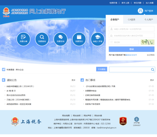 1. 打開“上海稅務”網站(http://www.51gecaochuan.cn/shop/9670.html),點擊 “網上辦稅服務廳”圖標,進入網上辦稅服務廳登錄界面。