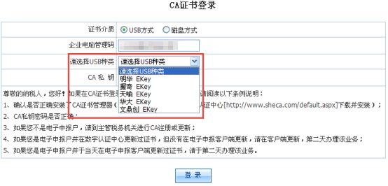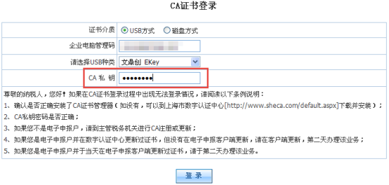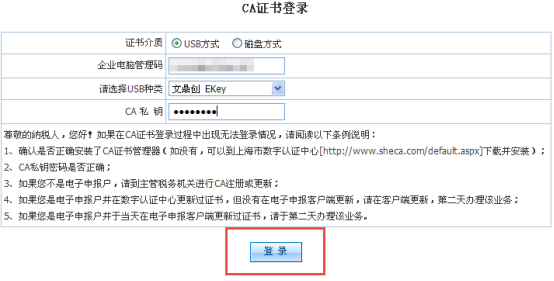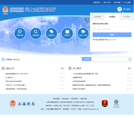 使用網上辦稅服務廳的某些功能時,需要您使用CA證書進行身份驗證。