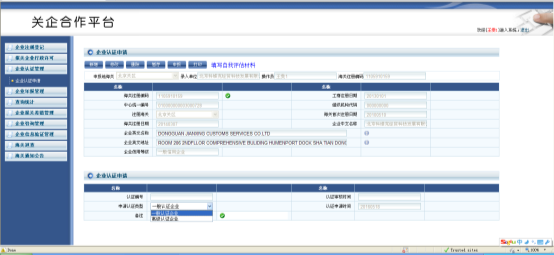 企業(yè)信息表和自我評估材料填寫完畢后,點(diǎn)擊申報(bào)按鈕,向海關(guān)提交認(rèn)證申請,等待海關(guān)的審核。