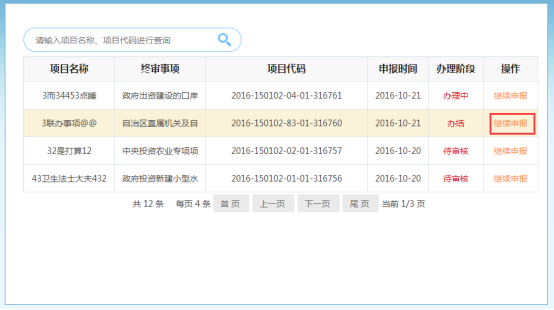 當(dāng)申報(bào)時(shí)選擇的事項(xiàng)層級(jí)或事項(xiàng)不正確時(shí),審批部門(mén)會(huì)做“終審審核不通過(guò)”處理,需要項(xiàng)目單位重新進(jìn)行申報(bào),項(xiàng)目單位在【項(xiàng)目信息】里點(diǎn)擊申報(bào)的事項(xiàng)階段,就可以查看回退的項(xiàng)目。