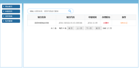 項(xiàng)目單位登錄平臺(tái),在【項(xiàng)目管理】下的【補(bǔ)正材料】中,點(diǎn)擊“材料補(bǔ)正“,該界面有三個(gè)頁(yè)簽,分別為預(yù)審查補(bǔ)正通知書(shū)、受理補(bǔ)正通知書(shū)、特別程序補(bǔ)正通知書(shū),點(diǎn)擊相應(yīng)頁(yè)簽進(jìn)行材料補(bǔ)正。