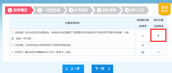 3)選擇聯(lián)審確定時(shí)的問(wèn)題時(shí)一定要如實(shí)選擇,避免出現(xiàn)無(wú)法提供材料的情況以及增減了聯(lián)審部門(mén),同時(shí)注意如果辦理過(guò)此事項(xiàng),則要在聯(lián)審確定時(shí)點(diǎn)擊“我已辦理過(guò)此事項(xiàng)”,這樣就不需要該部門(mén)再進(jìn)行審批(已經(jīng)給項(xiàng)目單位出過(guò)批文)。
