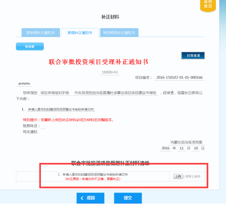 當(dāng)提交的材料不正確時(shí),審批部門(mén)會(huì)發(fā)送補(bǔ)正通知書(shū),需要項(xiàng)目單位對(duì)材料進(jìn)行補(bǔ)正修改。