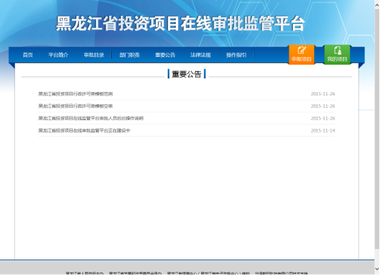 為進一步深化行政審批體制改革,最大限度地方便廣大人民群眾和市場主體辦理固定資產(chǎn)投資項目審批事項,經(jīng)黑龍江省人民政府批準,在互聯(lián)網(wǎng)開設(shè)黑龍江省投資項目在線審批監(jiān)管平臺網(wǎng)站,向公眾提供投資項目聯(lián)合審。。。
