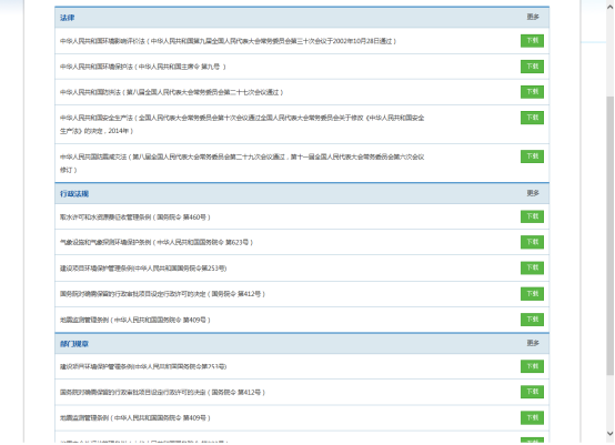 如想查看法律法規(guī),首頁(yè)點(diǎn)擊法律法規(guī)按鈕,進(jìn)入法律法規(guī)頁(yè)面,顯示法律、行政法規(guī)、部門規(guī)章前五項(xiàng)法規(guī),如想查詢?nèi)繂螕艉蠓礁啵?yè)面跳轉(zhuǎn)至顯示所有該項(xiàng)法律法規(guī)如圖34所示.