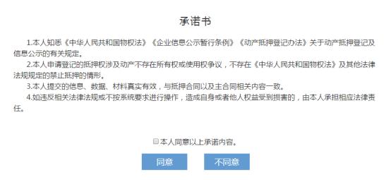 ”按鈕,可發(fā)起辦理一筆新的動產(chǎn)抵押登記變更業(yè)務(wù),點擊后,打開承諾書。