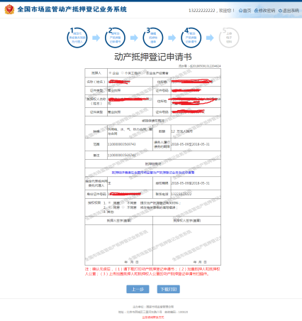通過以上五步操作,動產(chǎn)抵押登記信息已錄入完畢,可點擊“