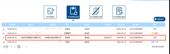 待登記機關(guān)審核后,如果審核通過,數(shù)據(jù)狀態(tài)將更新為“已登記”,顯示審核通過日期和登記編號,如下圖所示: