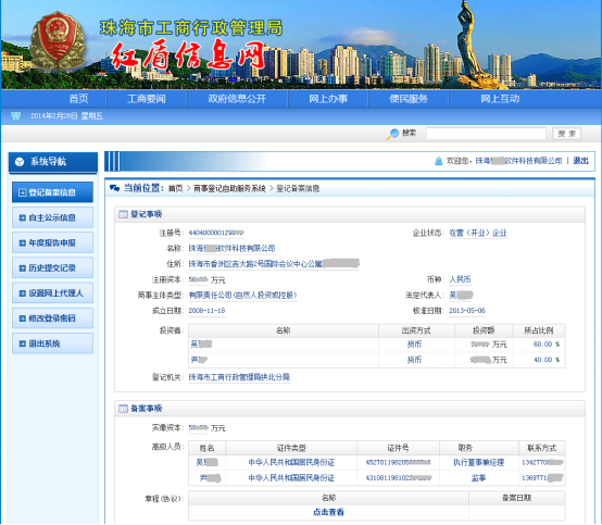 第三步:登錄到系統(tǒng),顯示登記備案信息。