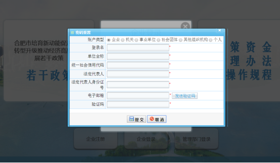 然后點(diǎn)擊企業(yè)登陸界面中的“找回密碼”按鈕,就跳轉(zhuǎn)到找回密碼的界面,如下圖: