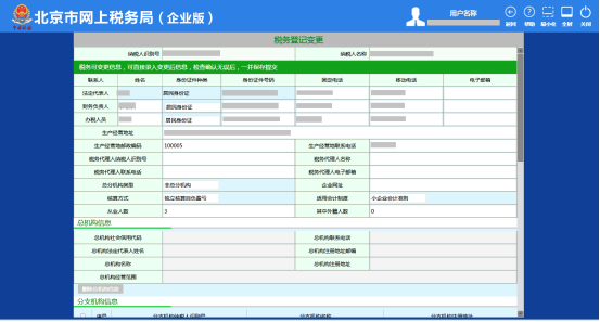 如果用戶在原國地稅均有登記信息或僅在原國稅有登記信息,打開的功能界面如下圖所示: