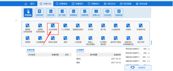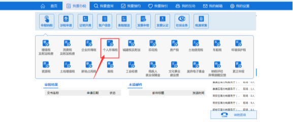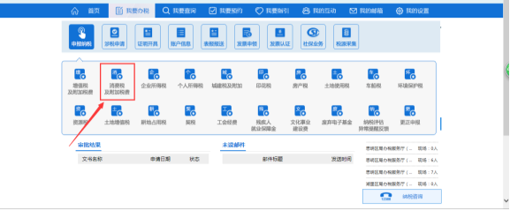 注:點擊后系統(tǒng)自動跳轉至網(wǎng)上申報系統(tǒng)主頁,納稅人自行選擇對應模塊進行申報操作。