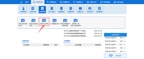 3.3.3.1. 步驟1:點(diǎn)擊我要辦稅-證明開具下的-發(fā)票認(rèn)證結(jié)果,如下圖