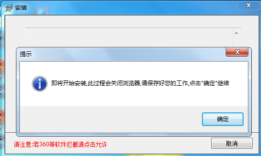 軟件安裝過(guò)程中會(huì)強(qiáng)制關(guān)閉電腦已經(jīng)打開(kāi)的瀏覽器,點(diǎn)擊【確定】