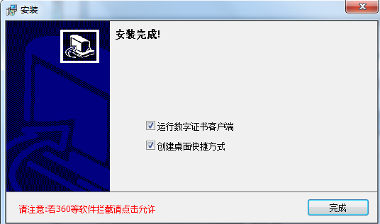 點(diǎn)擊【完成】,福建CA驅(qū)動(dòng)就安裝成功了。