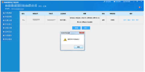 實(shí)名登記的信息進(jìn)行【修改】、【刪除】、【啟用】、【禁用】、【授權(quán)】等操作。當(dāng)該信息已經(jīng)被稅務(wù)人員審核通過后,審核狀態(tài)變?yōu)椤皩徍送ㄟ^”,此時(shí)此條信息不允許進(jìn)行【修改】、【刪除】、【授權(quán)】等操作。