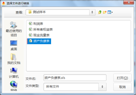 (2)將對應(yīng)的企業(yè)原表上傳。此處對應(yīng)為“資產(chǎn)負(fù)債表”、“利潤表”、“現(xiàn)金流量表”和“所有者權(quán)益變動(dòng)表”,如在資產(chǎn)負(fù)債表右側(cè)點(diǎn)擊“選擇文件”,彈出如圖3-2所示對話框: