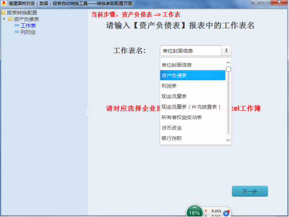 1、工作表設(shè)置。以資產(chǎn)負(fù)債表為例,假設(shè)需要轉(zhuǎn)換的EXCEL表格存在“資產(chǎn)負(fù)債表”、“Sheet1”和“Sheet2”3個(gè)工作表,因所需數(shù)據(jù)在“資產(chǎn)負(fù)債表”中,所以工作表名選擇“資產(chǎn)負(fù)債表”,如圖3-4所示。