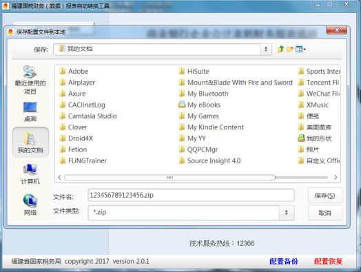 如圖3-14所示,納稅人可在右下角選擇藍(lán)色“配置備份”保存初始化完成后的配置文件到本地計(jì)算機(jī),工具將自動(dòng)生成一個(gè)以該納稅人納稅人識(shí)別號位名稱的加密zip文件。