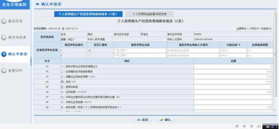 11、確認(rèn)數(shù)據(jù)無(wú)誤后,點(diǎn)擊【確認(rèn)】進(jìn)行申報(bào),系統(tǒng)返回申報(bào)回執(zhí)單;點(diǎn)擊【返回】鍵進(jìn)行數(shù)據(jù)修改。