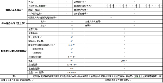 一、本表根據(jù)《中華人民共和國個人所得稅法》及其實施條例和相關文件制定,適用于納稅人取得限售股轉讓所得已預扣預繳個人所得稅款的清算申報,本表按月填寫。