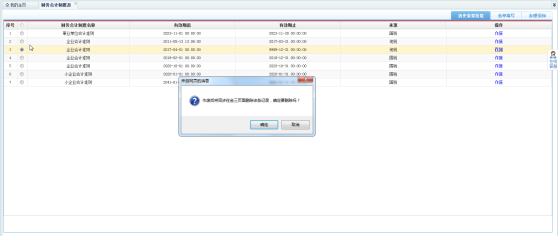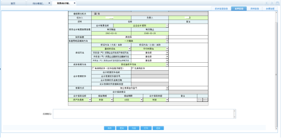 填寫表單,選擇會(huì)計(jì)制度名稱時(shí),系統(tǒng)會(huì)自動(dòng)查詢國地雙方備案歷史數(shù)據(jù),表單填寫完畢后,點(diǎn)擊【保存】按鈕,待頁面提示“操作成功!”后,點(diǎn)擊【確定】按鈕,表單內(nèi)容被保存。