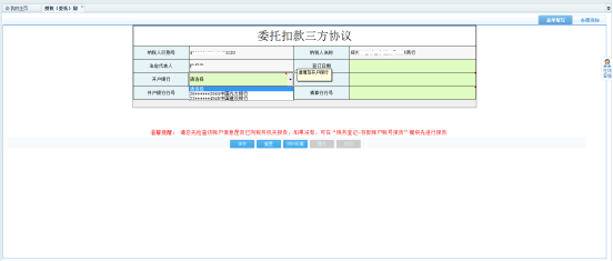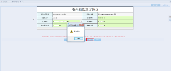 選擇開(kāi)戶銀行,填寫(xiě)簽訂日期、開(kāi)戶銀行行號(hào)及清算行行號(hào),點(diǎn)擊保存按鈕,提示操作成功: