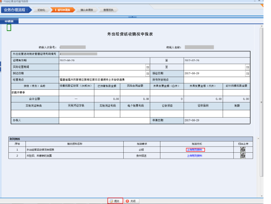 3.1.1選擇外出經營活動稅收管理證明后,點擊【確定】,進入到外出經營活動情況申請表