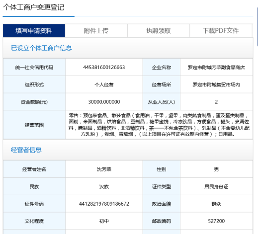 輸入工商統(tǒng)一信用代碼、個(gè)體工商戶名稱、經(jīng)營(yíng)者證件號(hào)碼才可啟動(dòng)個(gè)體工商戶的變更。