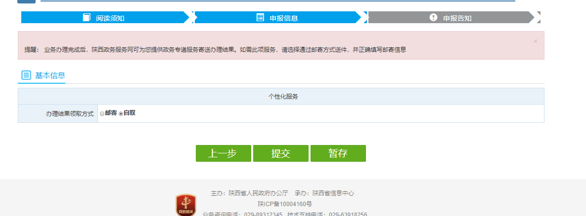 12.申報信息,選擇結(jié)果領(lǐng)取方式,可以選擇自取或郵寄,如果選擇郵寄則需填寫郵寄地址。