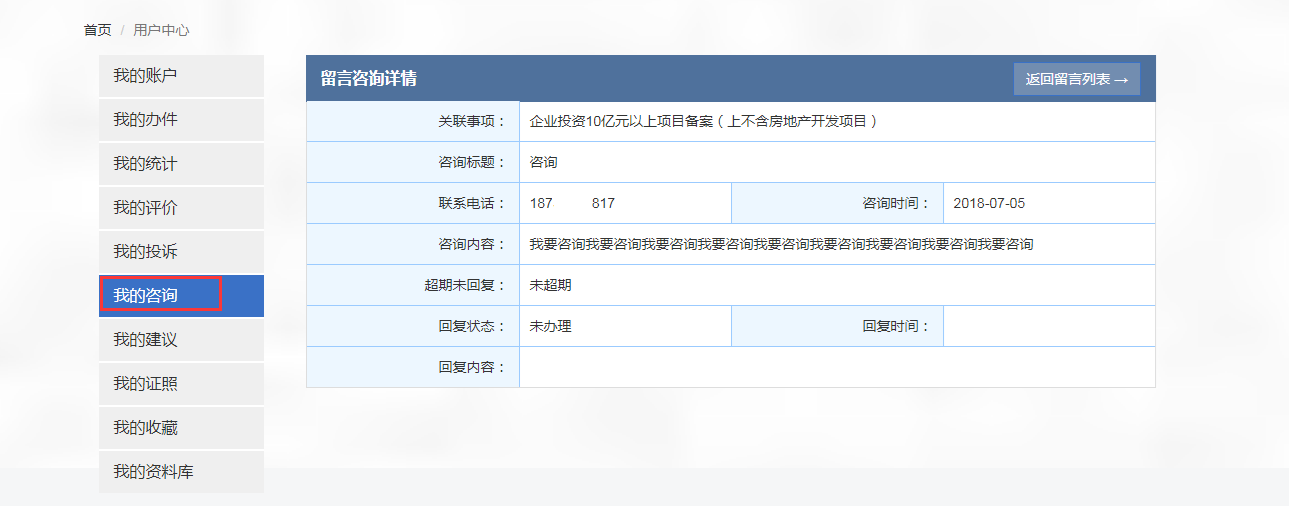 20.點擊用戶中心-我的咨詢中可查看咨詢問題的回復。