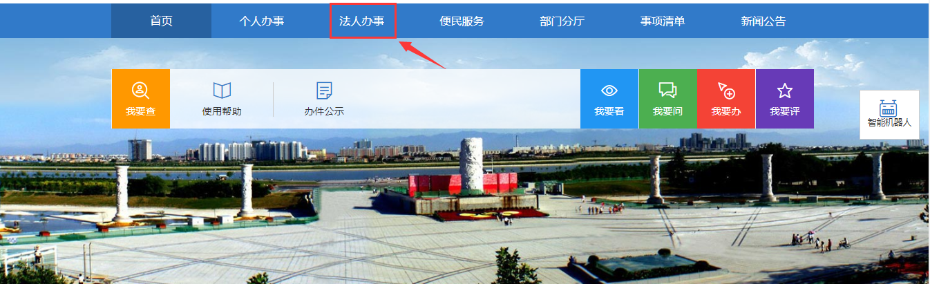 5.登錄之后在首頁選擇法人辦事或行政審批。