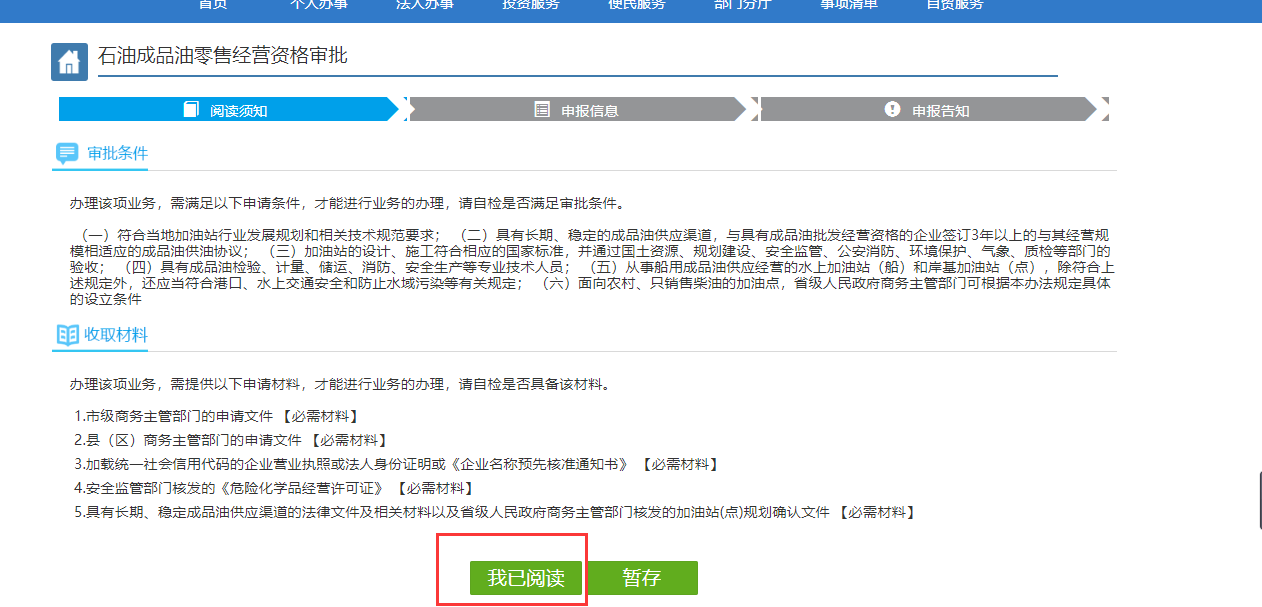 8.閱讀須知,查看辦理條件和所需材料,查看完畢點擊我已閱讀。