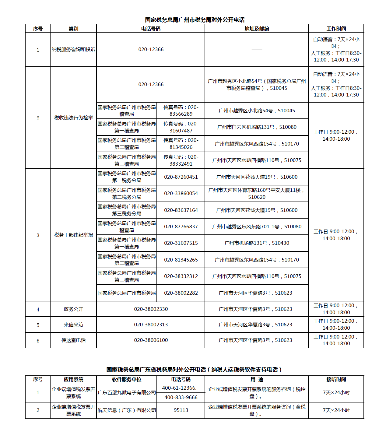 廣州市稅務局對外聯(lián)系電話