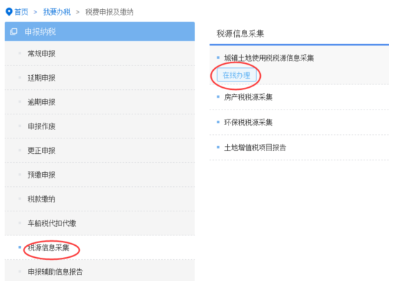 (1)登錄云南省電子稅務(wù)局-我要辦稅-稅費(fèi)申報(bào)及繳納-稅源信息采集-城鎮(zhèn)土地使用稅稅源信息采集