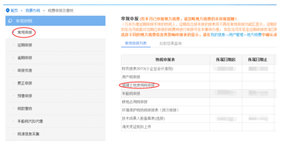 (2)我要辦稅à稅費(fèi)申報(bào)及繳納à常規(guī)申報(bào)à城鎮(zhèn)土地使用稅申報(bào)