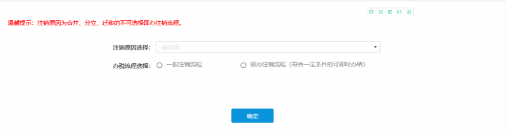 注意:如果“注銷原因”為合并、分立、遷移的不可選擇即辦注銷流程。