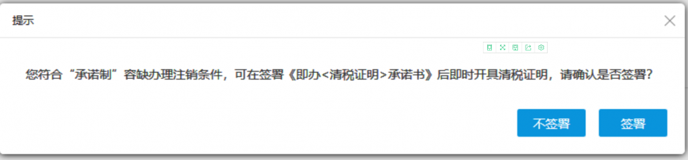 如果您不同意簽署《即辦<清稅證明>承諾書》,請點(diǎn)擊【不簽署】按鈕。
