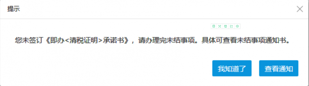 如果您同意簽署《即辦<清稅證明>承諾書》,您可以即時(shí)開具清稅證明,否則流程結(jié)束。